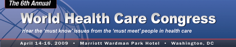 The 6th Annual World Health Care Congress recently concluded in Washington, D.C. and featured dynamic presentations from U.S. Health and Human Services Policy Advisor, Dora L. Hughes, Former Speaker, Newt Gingrich and Safeway Foods Chairman and CEO, Steve Burd. WHCC was honored to welcome over 1400 CEOs and senior level delegates, including an extensive speaker roster of over 175 industry thought leaders to foster solutions to improve quality, cost and coverage. The 7th Annual World Health Care Congress will be held April 12—14, 2010.