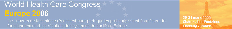 Thank you for your interest in the World Health Care Congress Europe. The 2nd annual event just took place in Chantilly from 29-31 March 2006. It was a huge success: the congress rapidly sold out and registrations had to be closed early. If you missed the open registration period and were unable to attend, please accept our apologies.